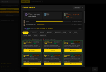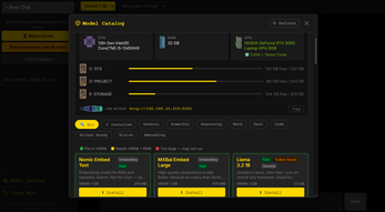 - ๐ค Model Catalog — browse and install 49 Ollama models with hardware compatibility scoring